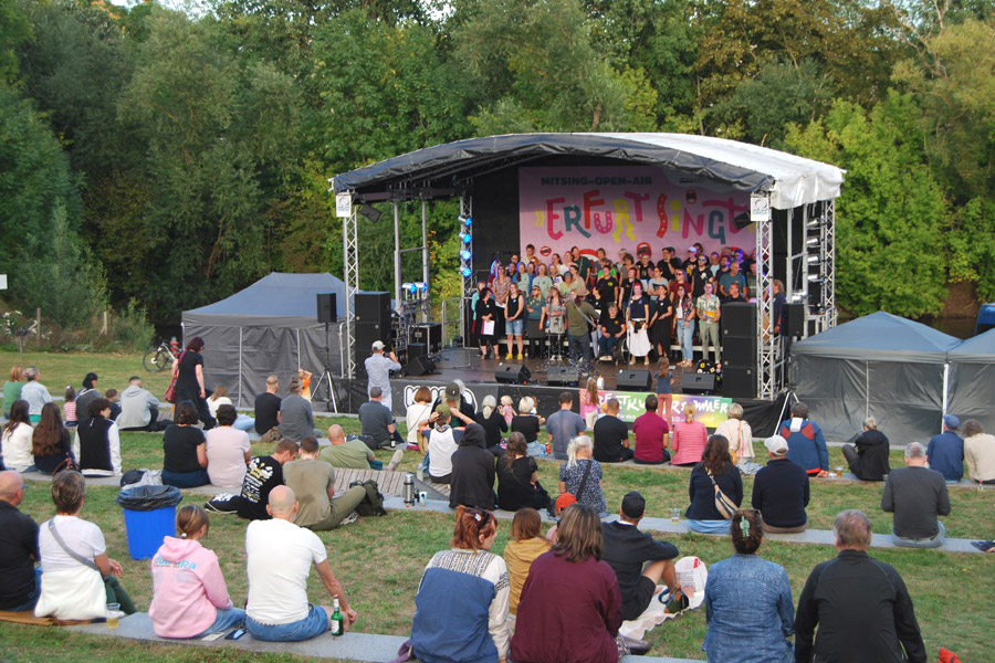 Die Veranstaltung "Erfurt singt im Sommer" fand im Rahmen des Erfurter Kultursommers am 30. August 2025 von 15 Uhr bis 22 Uhr im Park Klärchen in der nördlichen Geraaue statt.