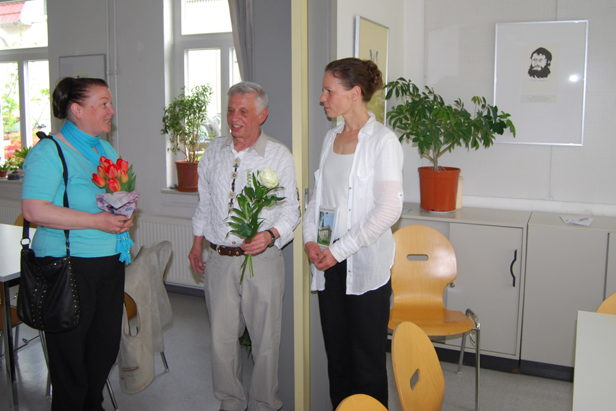 Eröffnung der Ausstellung von Grafiken zu Martin Luther im Freiraum - Blumen für den Künstler Werner Hehn, Foto: R. Falk