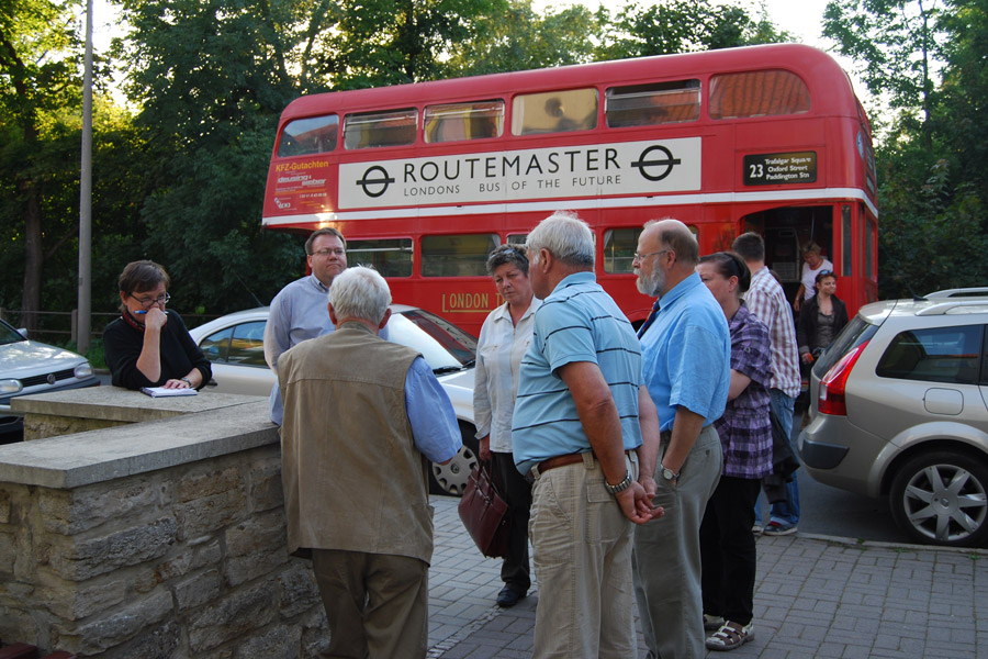 1. Stadtteilführung im Doppelstockbus mit dem Stadtteilhistoriker Werner Hehn - Halt am "Aquarium", Foto: R. Falk