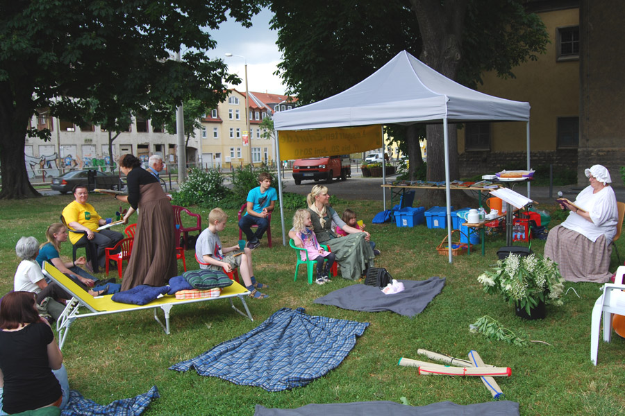 Lesegarten an der Lutherkirche - "Kräutermärchen" zu Kräuterkuchen und -getränken, Foto: R. Falk