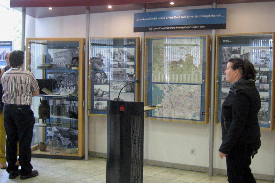 Historische Ausstellung des Stadtmuseums Erfurt in der Sparkasse in der Magdeburger Allee anlässlich des 100. Jubiläums der Eingemeindung von Ilversgehofen zur Stadt Erfurt