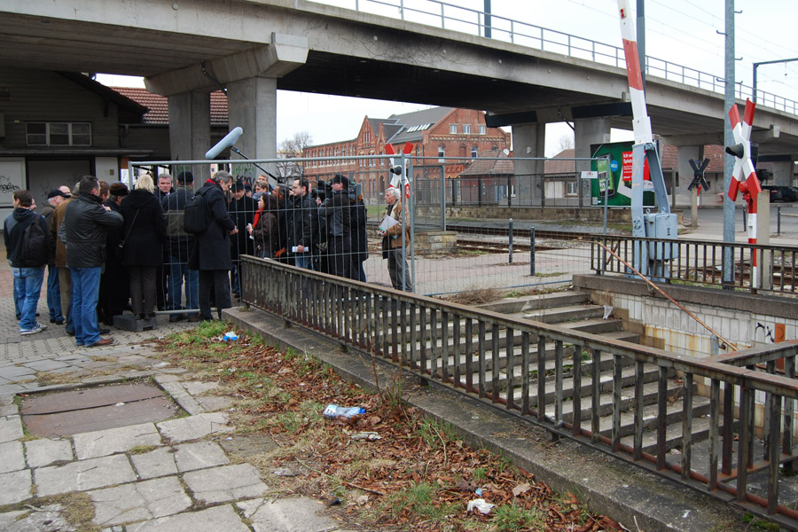 Stadtteilbegehung des Oberbürgermeisters Andreas Bausewein in Begleitung der Beigeordneten und Fachämter im Ortsteil Ilversgehofen - an der Fußgängerunterführung am Nordbahnhof, Foto: R. Falk