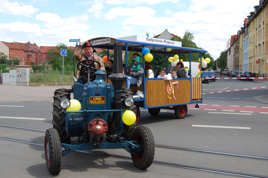 Traktorkutschfahrten mit dem 'Lutherstein-Express' durch die Allee zum 19. Magdeburger-Allee-Fest, Foto: R. Falk