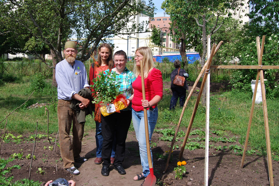 Überreichung eines Präsents anläßlich der Eröffnung des Interkulturellen Gartens "Paradies" in der Metallstraße, Foto: R. Falk