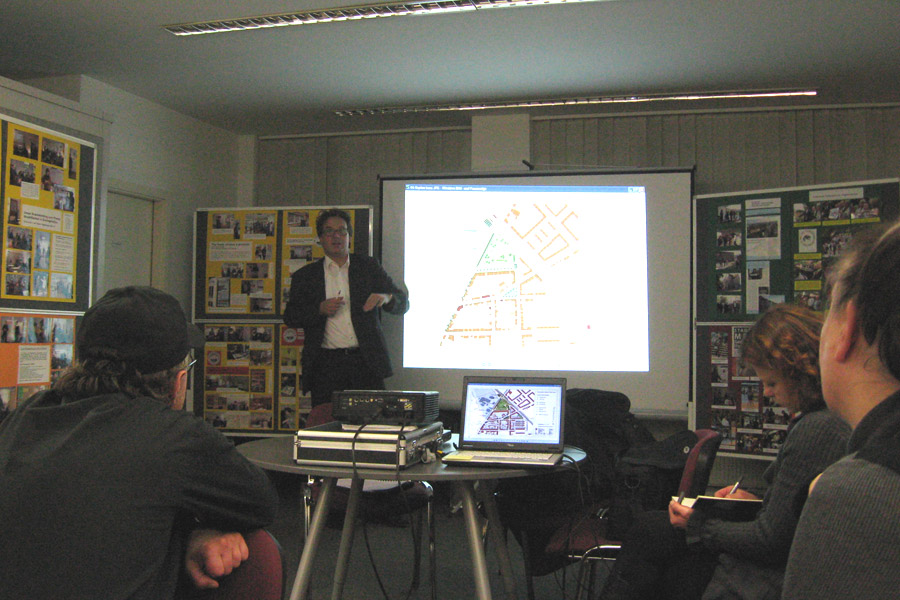 Einweisung der Studenten des 3. Studentischen Entwurfsseminars der Bauhaus Akademie Schloß Ettersburg im Büro des Bürgerbeirates, Foto: R. Falk