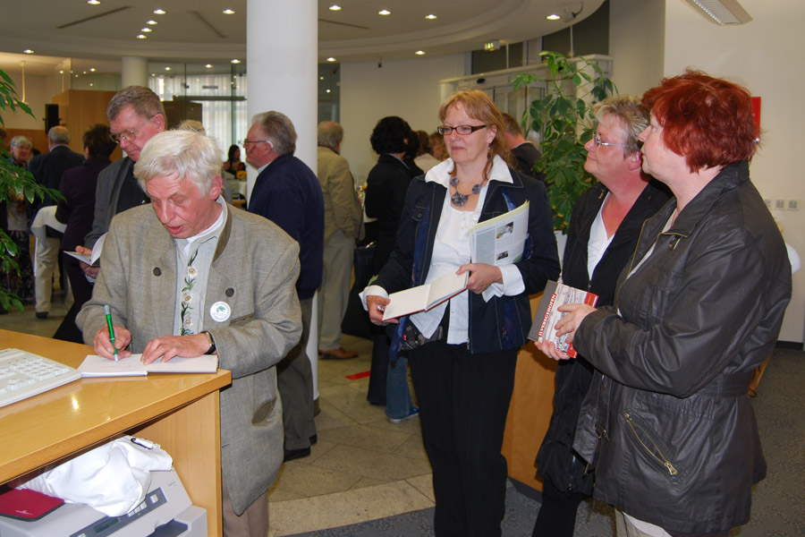 Signierung des Büchleins 'Ilversgehofen - ein Stadtteil im Spiegel der Geschichte' auf der Festveranstaltung '100 Jahre Sparkasse' durch den Autor Werner Hehn, Foto: R. Falk