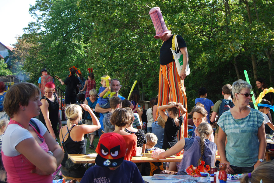 Ballonkünstler auf Stelzen zum 7. Vollbrachtstraßenfest, Foto: R. Falk