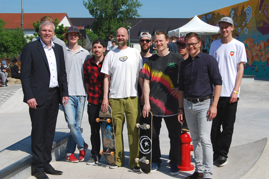 Übergabe der Scaterbahn im Stadtteilpark Johannesfeld durch den Oberbürgermeister Andreas Bausewein, Foto: R. Falk