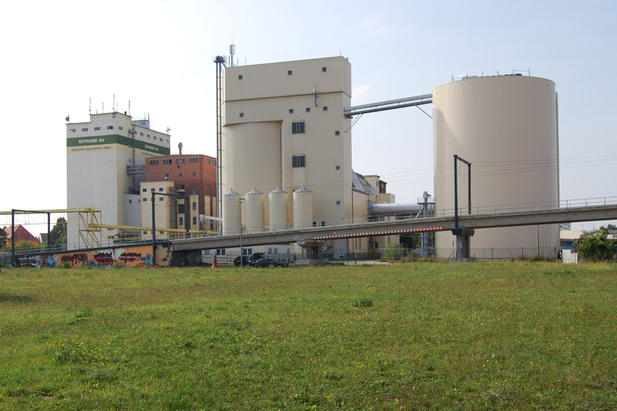 Blick von der Brachfläche am Nordbahnhof auf die Malzwerke, Foto: R. Falk
