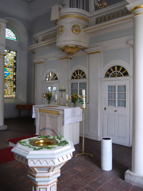 Taufbecken und Altar der Martini Kirche, Foto: R. Falk (2010)