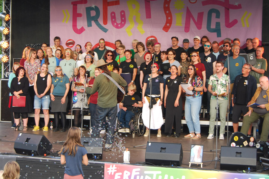 Höhepunkt von "Erfurt singt im Sommer" war das gemeinsame Singen mit Philipps KneipenChor, ähnlich wie zum Abschluss des Weihnachtsmarktes auf dem Domplatz.